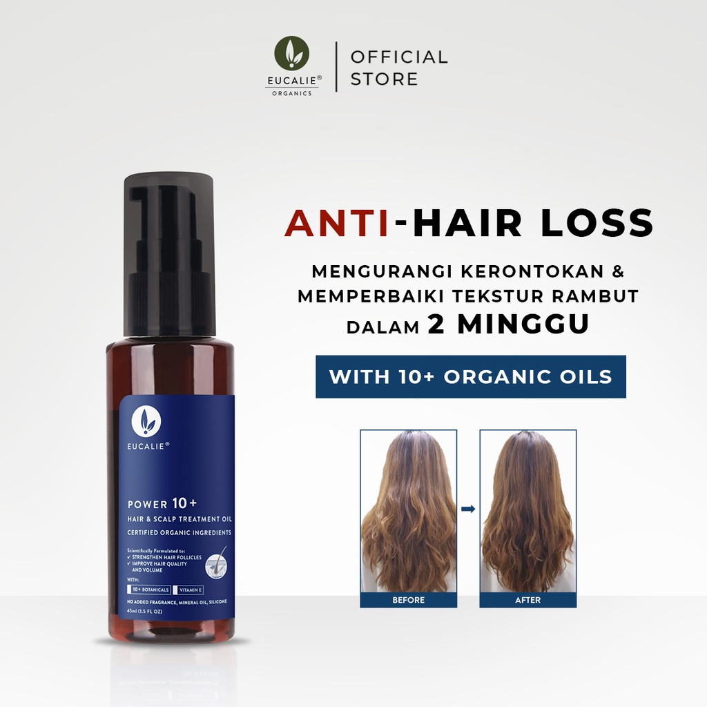 Eucalie Organic Hair Growth Oil & Scalp Treatment - Power 10+ (Rontok, Rusak, Ketombe, Sensitif)